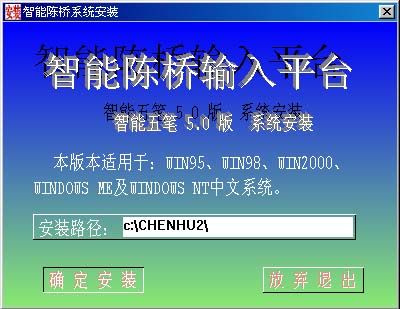 你可调整安装路径,系统默认安装路径为 c:\chenhu2\,如你没有特殊要求,就不需要改变路径,直接点击“确定安装”。如你不想安装在此路径中,你可以输入你想安装文件夹的路径(最好自己先建立该路径下的文件夹),输入完毕后点击“确定安装”。点击“确定安装”后,系统就会自动安装,并最后会弹出如下的窗口(见下图2-6);