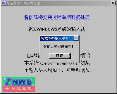 ⑴、由WINDOWS系统桌面上"我的电脑"进入到智能五笔软件存放的文件夹c:\znwb\(如是正式版本,也可进入到软盘驱动器A),用鼠标双击安装文件setup.exe,会弹出以下安装窗口(见下图2-4)。