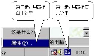 ⑴、一般用户登陆后,可用鼠标右键点击右下角任务栏内的输入法管理器图标,弹出菜单后点击“属性”。(见下图2-7)