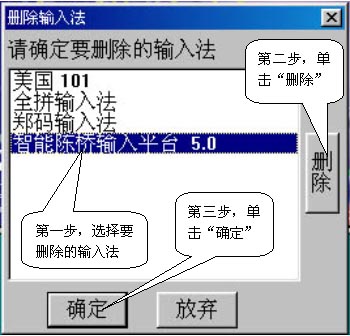 ⑵、选择"智能陈桥汉字输入平台",进行删除操作,并选择"确定"退出。