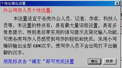 ②单击如上图3-7中的"办公写作人员"项后系统会弹出如下图3-8的"办公写作人员个性设置"窗口,单击"确定"就可完成设置。