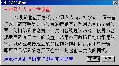 2、专业录入人员个性设置适应人员:专业打字员、专业录入人员、五笔高手和各种快速盲打人员。