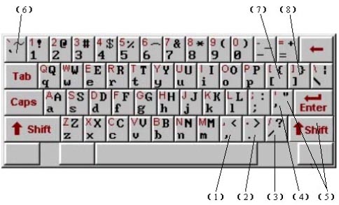 常用汉字标点符号主要含有逗号、句号、顿号、引号、书名号等,这些标点符号的输入主要参照了在我国流行的各汉字系统的传统输入习惯。常用标点符号的键位对应见下图4-1。