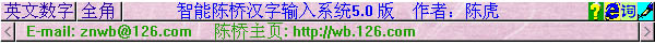 半角的英数标点符号输入,一般采取在英数状态下,按照英数标点输入习惯及标准进行输入。即可按一下英数转换键(默认为右Shift键),就可使智能陈桥系统转换成英数输入状态,见下图4-3。