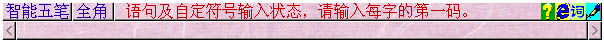 智能陈桥系统在初始状态的情况下,当按一下分号键后,系统将提示:语句及自定符号输入状态。智能五笔进入智能状态见图4-20。