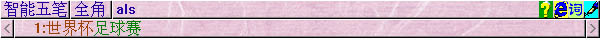 当你在智能语句输入状态下输入"世界杯足球赛"语句时,你首先按下了分号键,接着当你仅按下了编码"ALS"时,智能陈桥系统提示窗口也许已经以两种颜色提示出了"世界杯足球赛"这一语句,见图4-22。