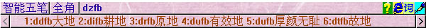 (1)当你需要输入“耕地”词组时,你不知道“耕”字的第二个编码是什么,这时你可用学习键Z来代表第二个编码而键入“DZFB”,系统将在提示行提示出与“D?FB”相配的字和词组,见下图4-28。