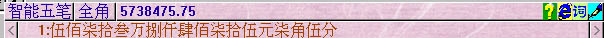 按一下分号键,再按一下引号键(分号键旁边的键),再键入数字键(含小数点键)5738475.75,在智能五笔的提示行就会有大写金额提示,见下图4-37。