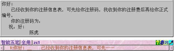 已经收到你的注册信息表,可先给你注册码,我收到你的注册费后再给你正式编号。