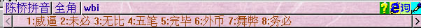 例如:当需要输入词组"五笔"时,可输入其拼音码wubi,则就可在提示行中选择输出,见下图4-45。