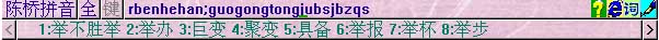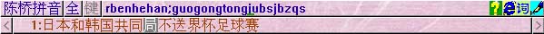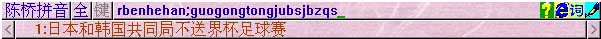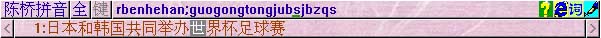 例如:当需要输入语句“日本和韩国共同举办世界杯足球赛”,可键入:rbenhehan;guogongtongjubsjbzqs,在提示窗口可能有如下图4-51-0的提示。