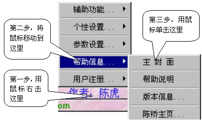 智能陈桥主封面的查看方法: 1、用鼠标右击智能五笔提示状态窗口,在弹出主菜单中将鼠标移动到"帮助信息",并用鼠标单击"帮助信息"中的"主封面"项,见下图5-1。