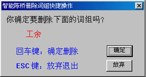 为了方便删除无重码的词组,智能陈桥系统设置了快捷删除词组的另一种操作。具体操作如下: