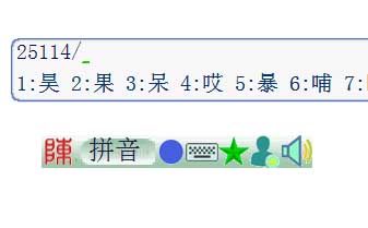 三、不知道读音的单字的输入:可输入该单汉字的五笔画编码。既用数字“12345”代表“横竖撇捺折”,输入该单汉字的前四笔和最后一笔的笔画编码。 陈桥拼音规定:为了屏蔽其它功能而专门使用五笔画输入单汉字,可在开头输入一个数字0(也可不输入),随后输入单汉字的前四笔和最后一笔的笔画键码,最后输入一个“/”,选取或翻页选取输出。 例1:“昊”字,可输入25114/,就可选取输出“昊”字。