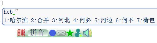例如你可只需要输入heb,就可输出“哈尔滨”。